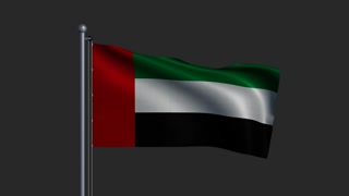 The flag of the United Arab Emirates on a flagpole waving in the wind