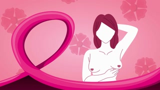 breast cancer campaign animation with woman doing self-examination and ribbon