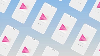 Abstract colorful pink triangular symbol of a new application. Motion. Demonstration of a smartphone digital features.