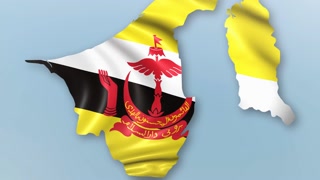 Brunei Flags zooming in and Forming the country border map intro which is useful for news, political events, sports intros and presentation.