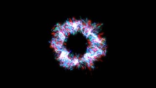 A festive sphere with moving feathery waves, with shimmering bright star-shaped particles.