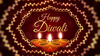 Happy Diwali Greetings Text Background Animation With Lamps, Lights and Fireworks.