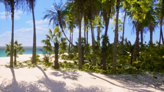 Paradise landscape of tropical beach with calm ocean waves and palm trees