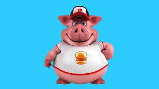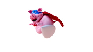 Fun 3D cartoon animation of a pig rocker on a motorbike