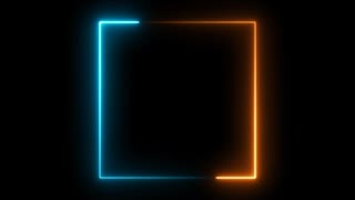 Blue and orange neon square frame overlay with glowing light trails and smooth rounded corners on transparent background Seamless loop animation for futuristic event visuals and celebration design