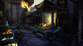 Nighttime market scene. Rustic night market with fragrant spice displays