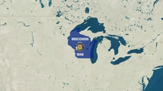 Wisonsin United States America USA State Map 3d Animation