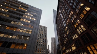 Urban morning scene showcasing tall glass structures and active professionals in motion