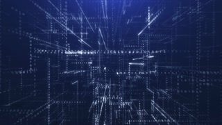 Futuristic matrix hologram city seamless loop. Digital blueprint of buildings with binary code particles 3D animation. Construction, growth, technology and connection concept with alpha channel matte