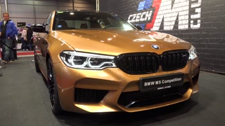 Naperville IL USA, 22 Oct 2024 - New BMW M5 Sedan slowly riding in parking lot. Close up view, Element of car.