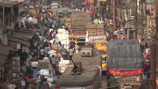 KOLKATA, INDIA DECEMBER 2014: Traffic makes its way through a busy street in the bazaar in Kolkata, commerce and transport in India