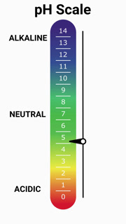 pH scale indicator moving between acidic and alkaline levels
