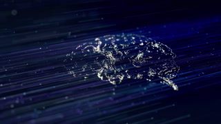 World map composed of tiny white dots on a dark background, representing global data distribution