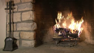 Warm Slow motion flames in a cozy brick fireplace