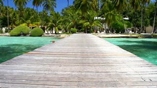 Tropical Paradise at Maldives with palms and blue sky