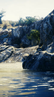 Rocky Shoreline Surrounding Vast Body of Water
