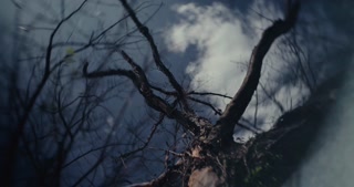 Mangled dead trees in a cold ominous forest