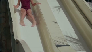 Young child on water slide in slow motion, Shot with a high-speed camera at 1000 frames per second.