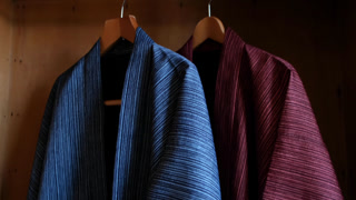 Stretched threads. close-up. dyeing and drying of threads. fabricating cloth from threads. Industrial textile factory.