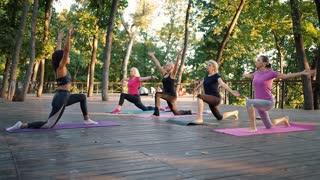 Morning Yoga: Mature Women's Fitness Class Practicing Warrior Pose