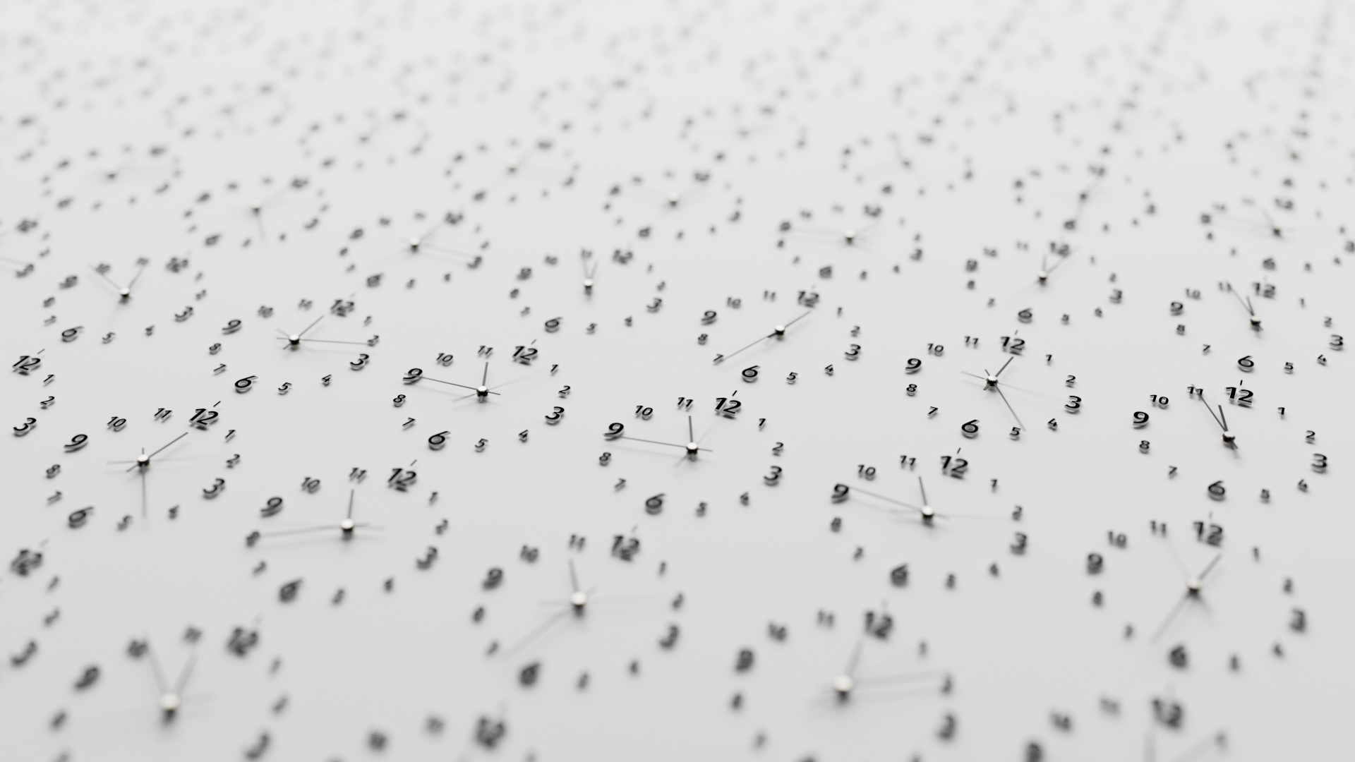 3d Timelapse Of Many Minimalist Classic Black Wall Clocks Neutral Light White Background Day To Night Transition Slide Camera MovementÂ
