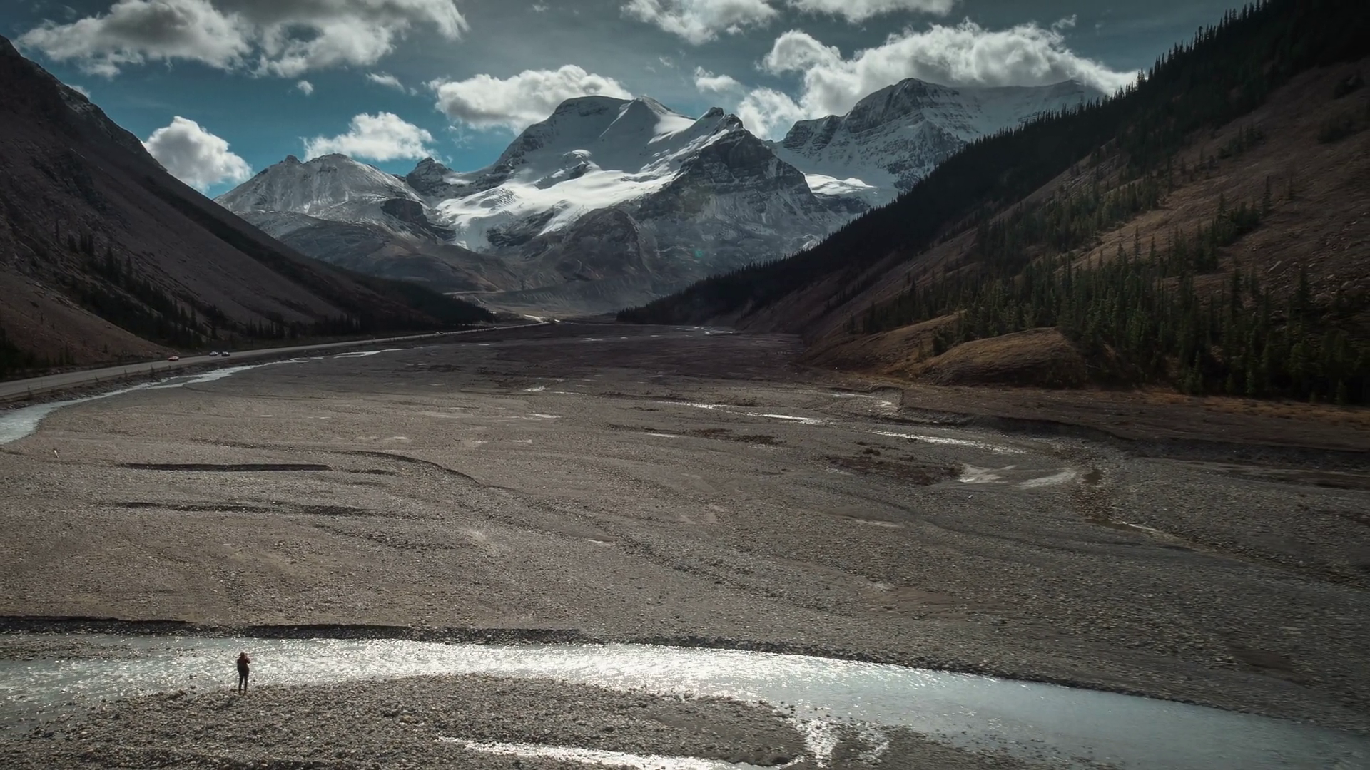 4k 60fps Aerial Of Woman By Athabasca Rive In JasperÂ