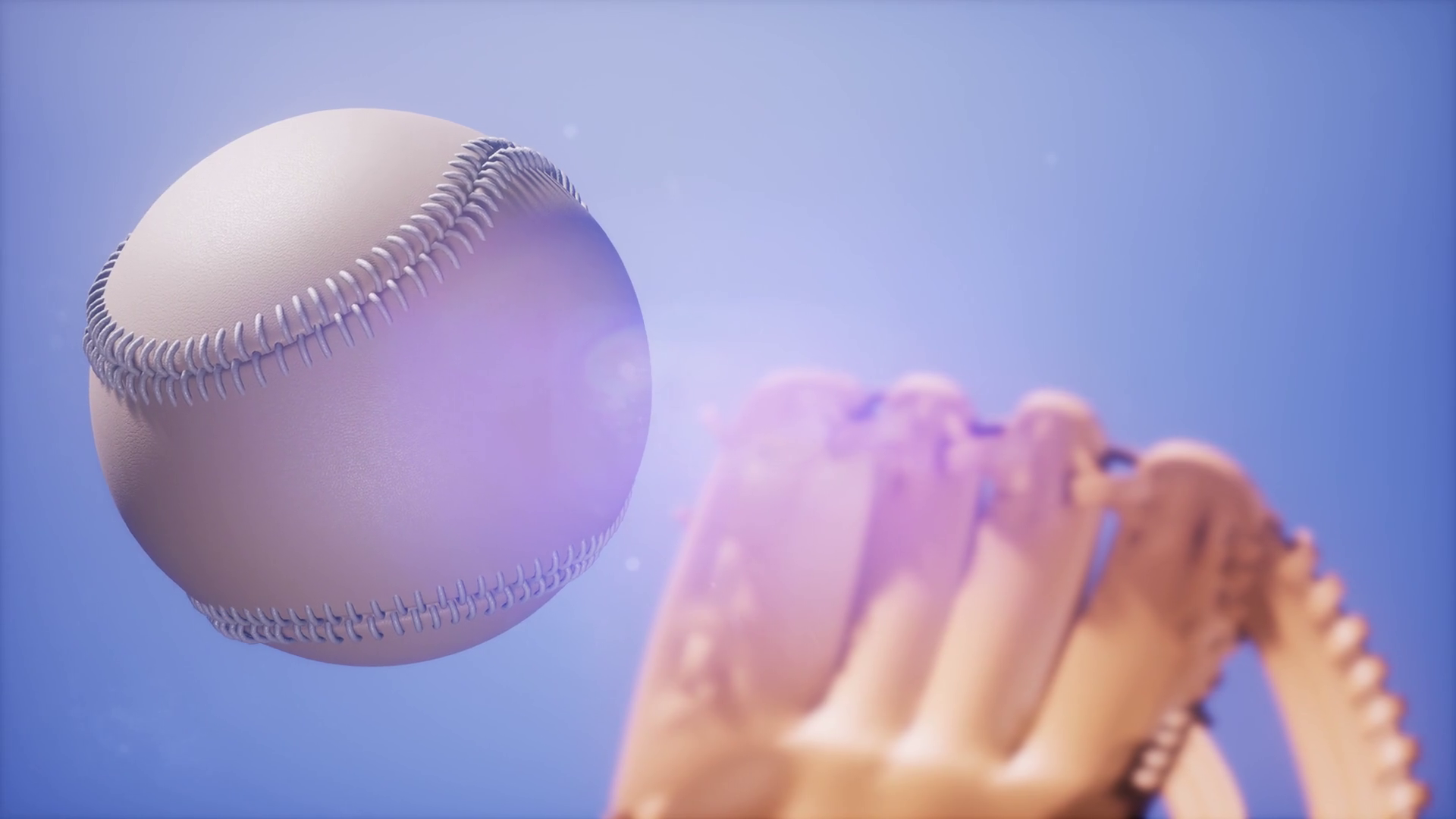 4k Super Slow Motion Baseball And Mitt At Blue Sky Background