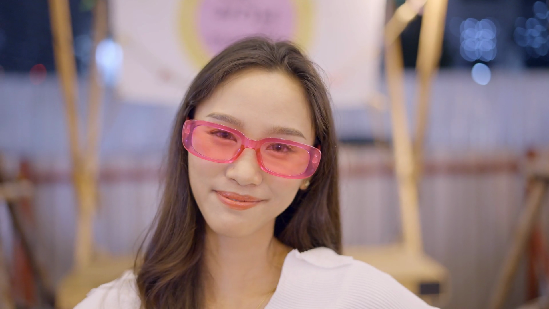 A Beautiful Confident Girl Wearing Trendy White Top Pink Sunglasses Posing On Blur Background