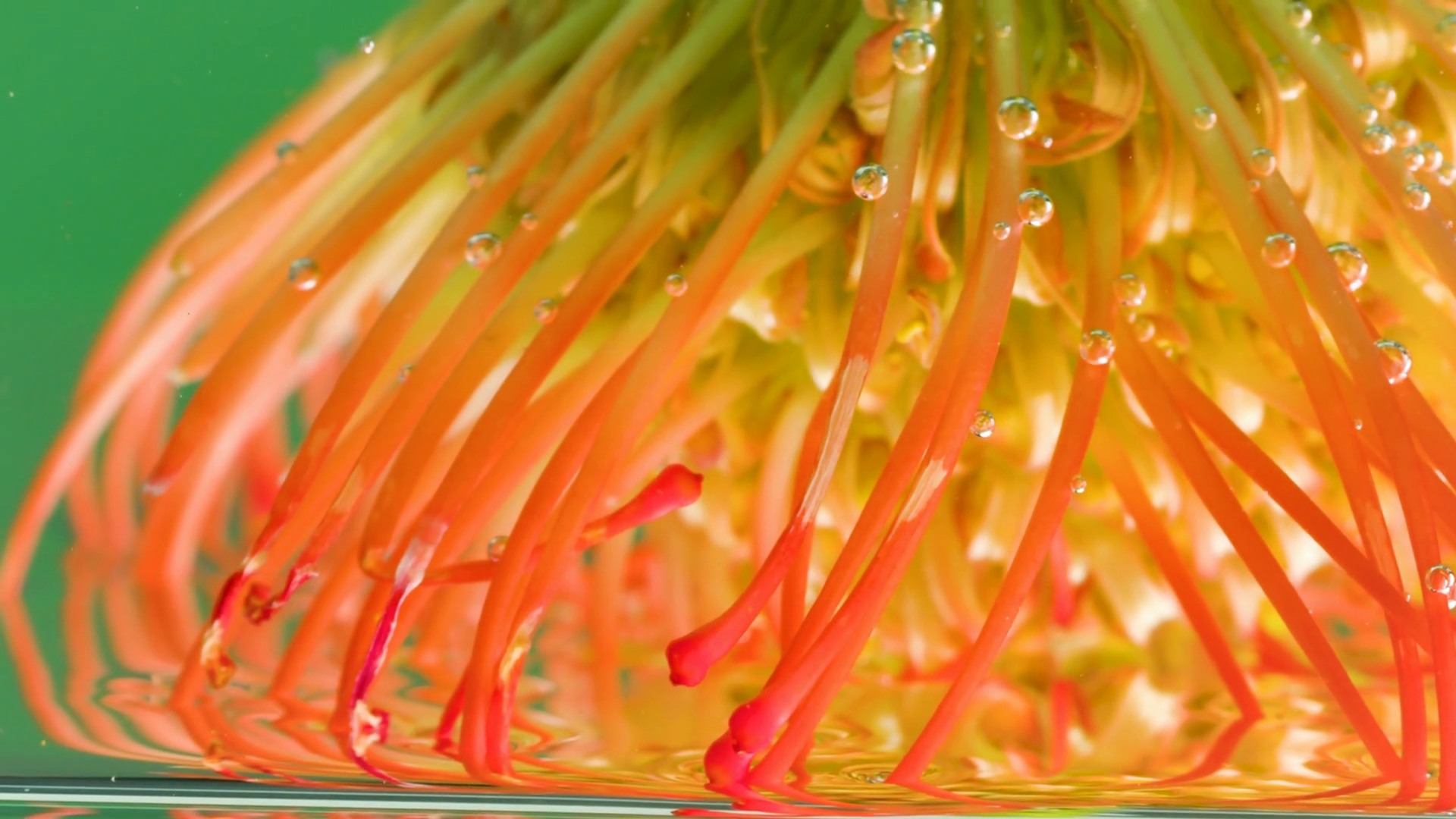 A Brilliant Flower Stock Footage The Water In Which The Orange Flower Is Enveloped And They Are Taken CloseupÂ