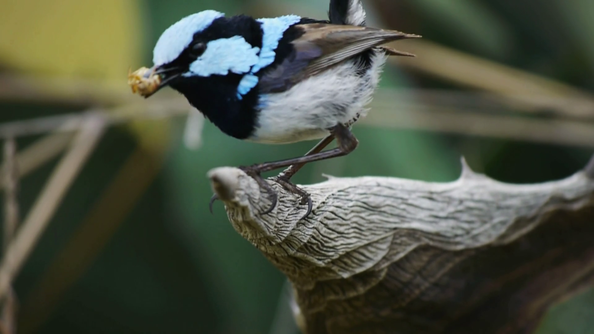 A Close Up Shot Of A Male Superb Fairy Wren With An InsectÂ