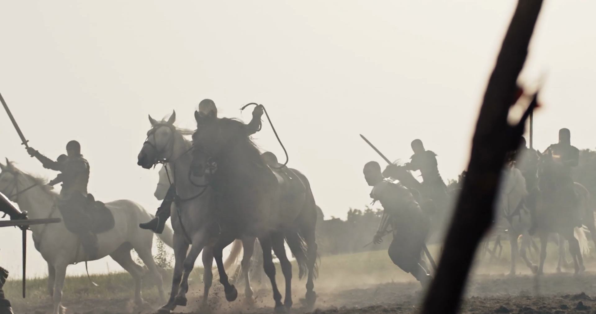 A Group Of Knights Riding Their Powerful Horses Draws Their Swords With A Sharp Metallic Ring The Gleaming Blades Catch The Light As They Prepare For Battle Charging Forward With Fierce DeterminationÂ