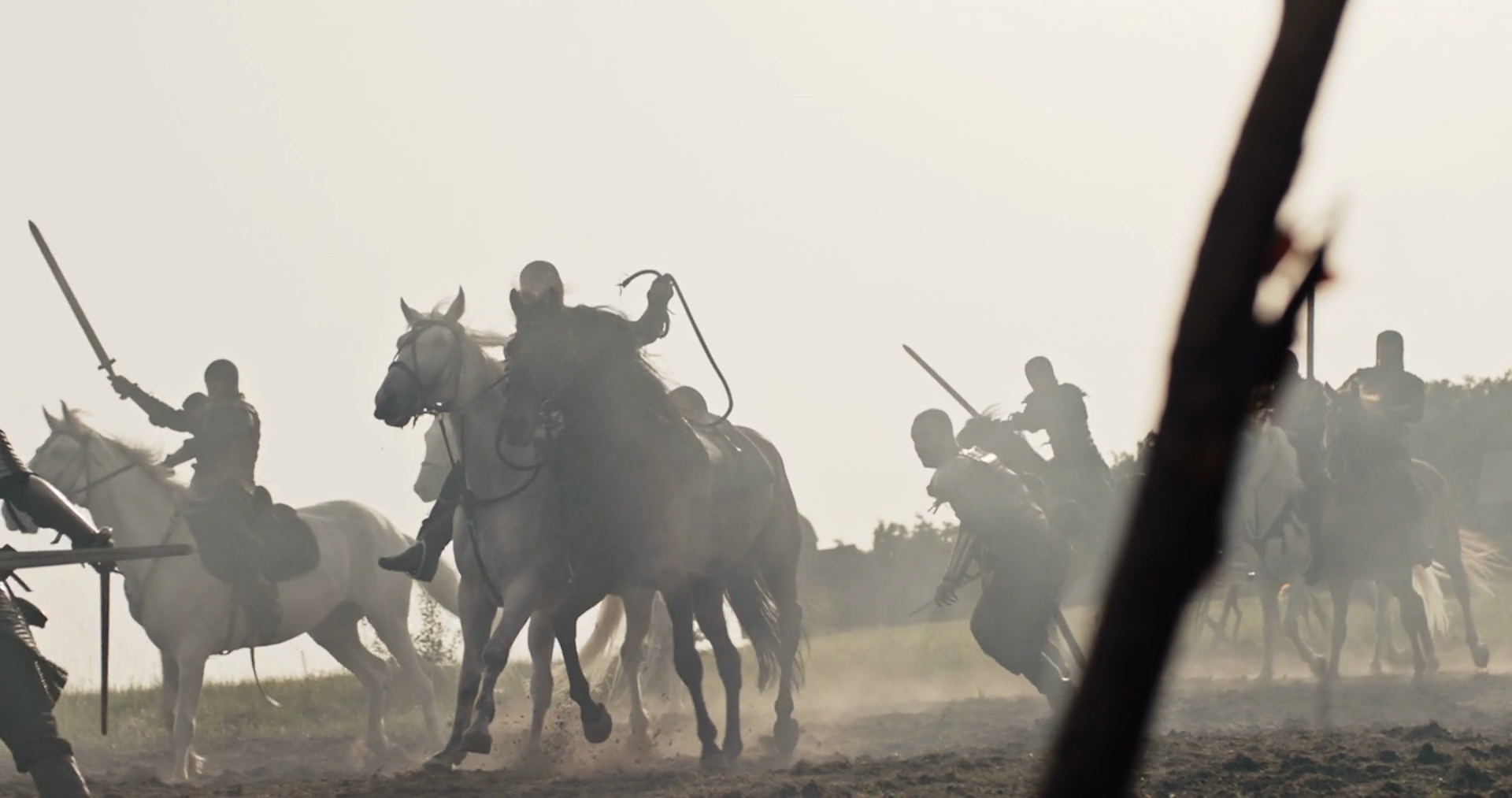 A Group Of Knights Riding Their Powerful Horses Draws Their Swords With A Sharp Metallic Ring The Gleaming Blades Catch The Light As They Prepare For Battle Charging Forward With Fierce DeterminationÂ