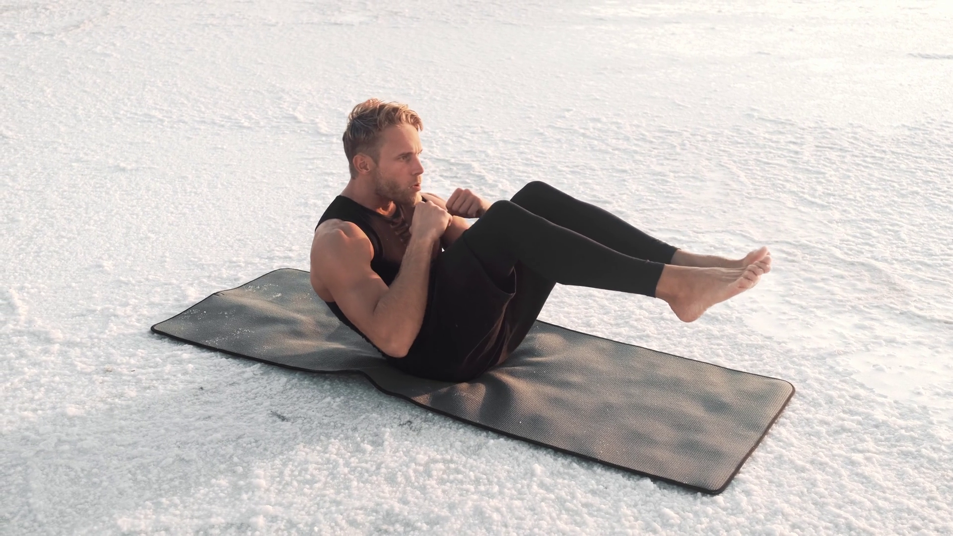 A Handsome Young Athlete Is Pumping His Press Lying On The Yoga MatÂ