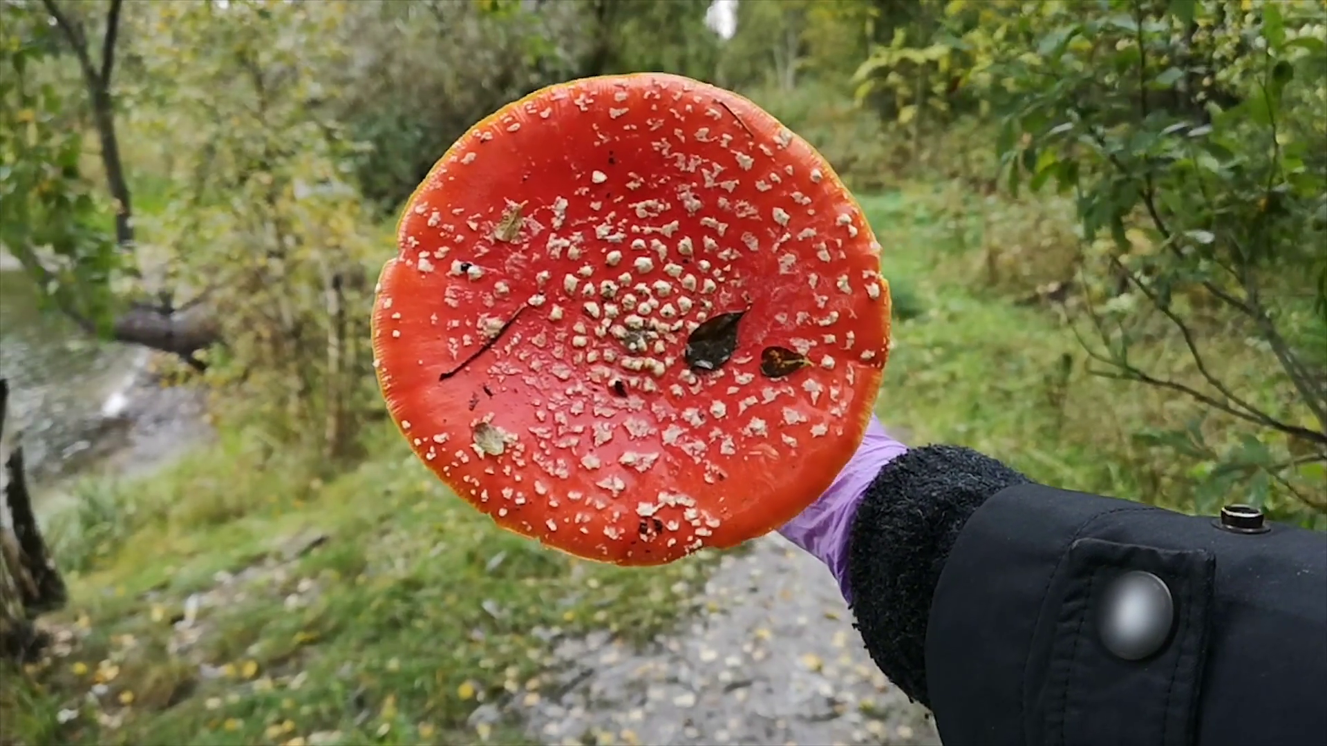 A Man Holding In Hand A Mushroom Flyagaric In The ForestÂ