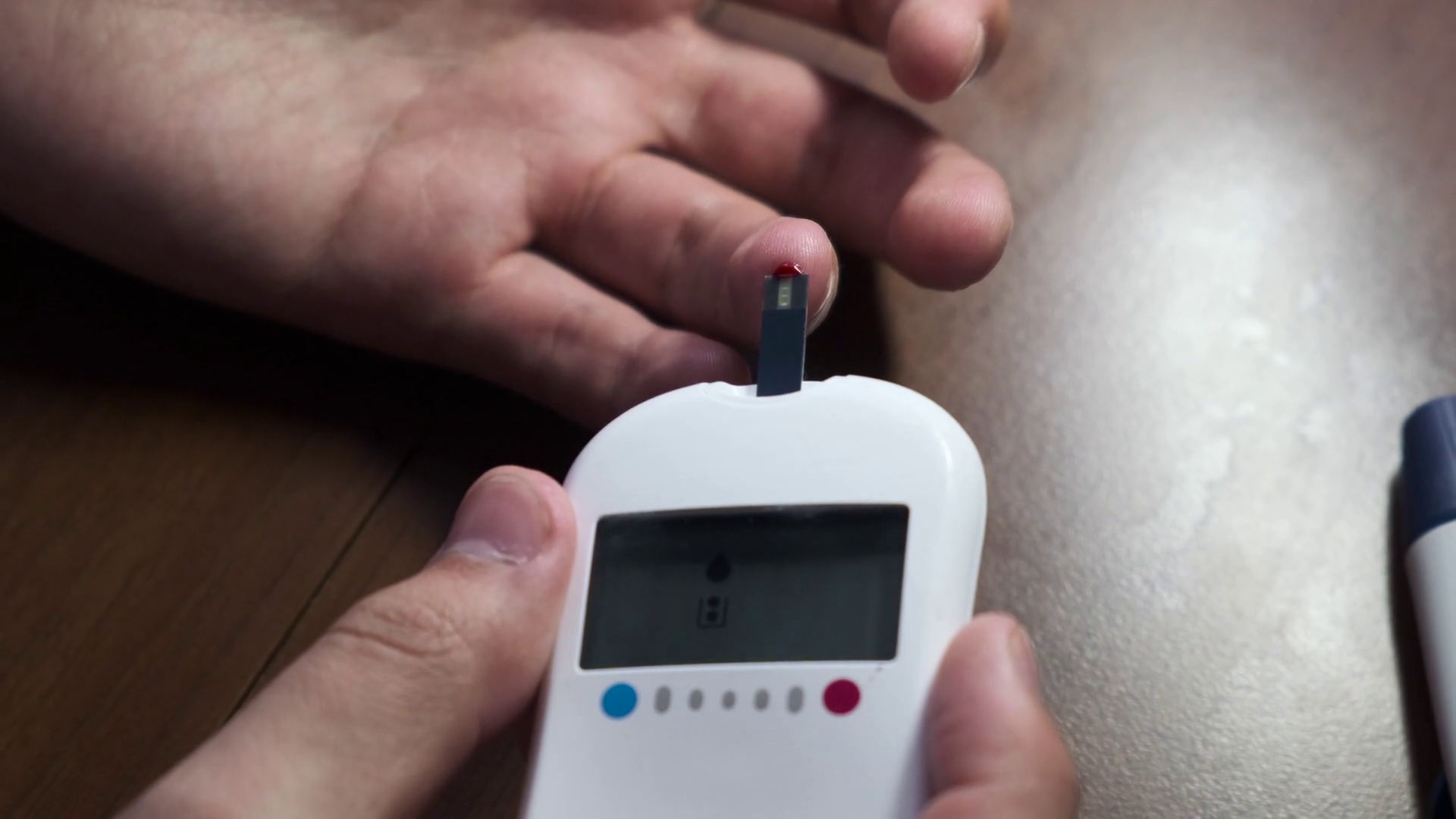 A Man Measures The Level Of Sugar With A Glucometer Close Up Blood Sugar TestÂ