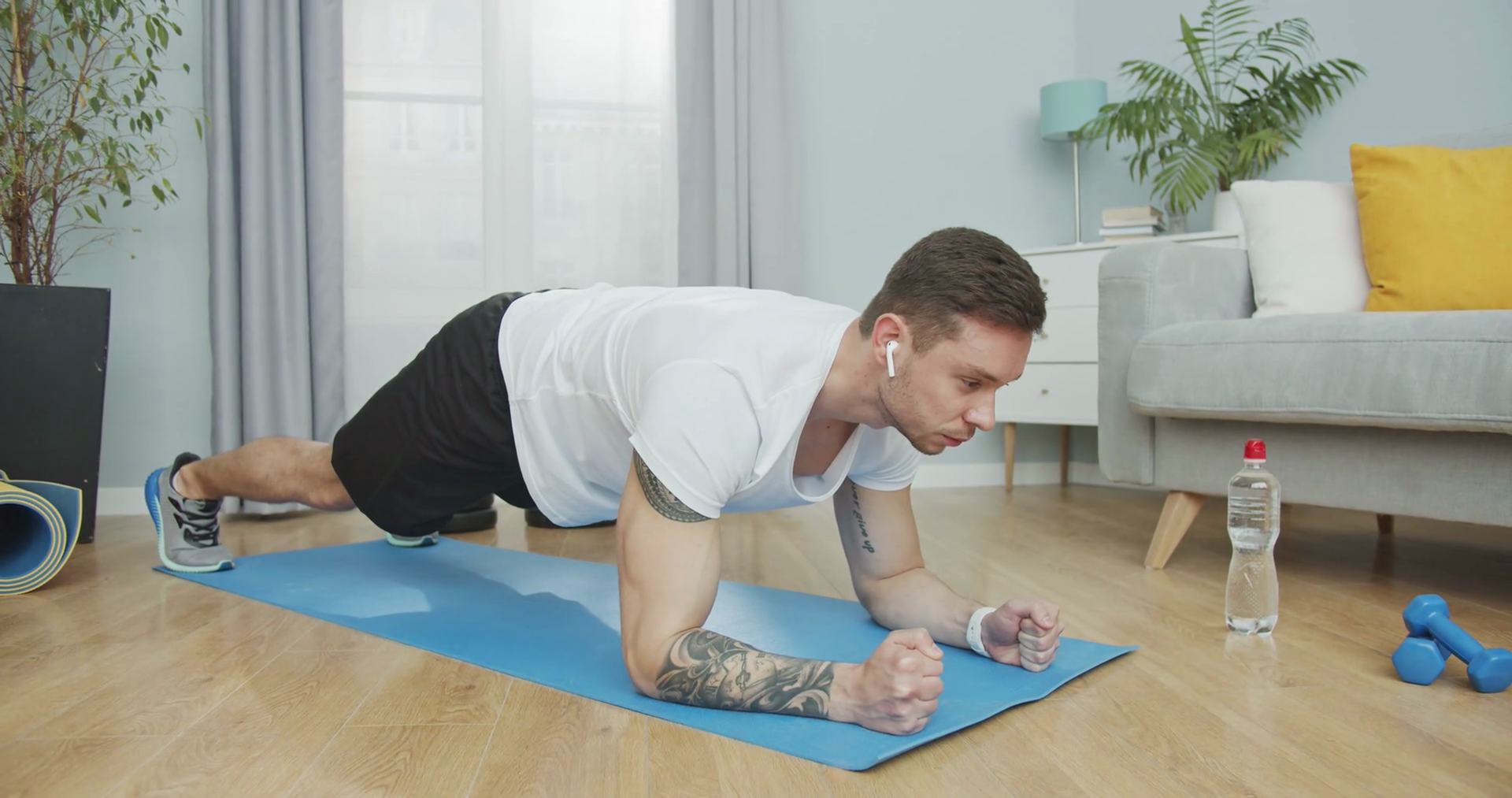 A Trainer Practicing Sports And Working Out A Person Doing Plank Exercise With A Smartwatch Inhome Training During Pandemic Quarantine Lockdown Isolation Stay HomeÂ