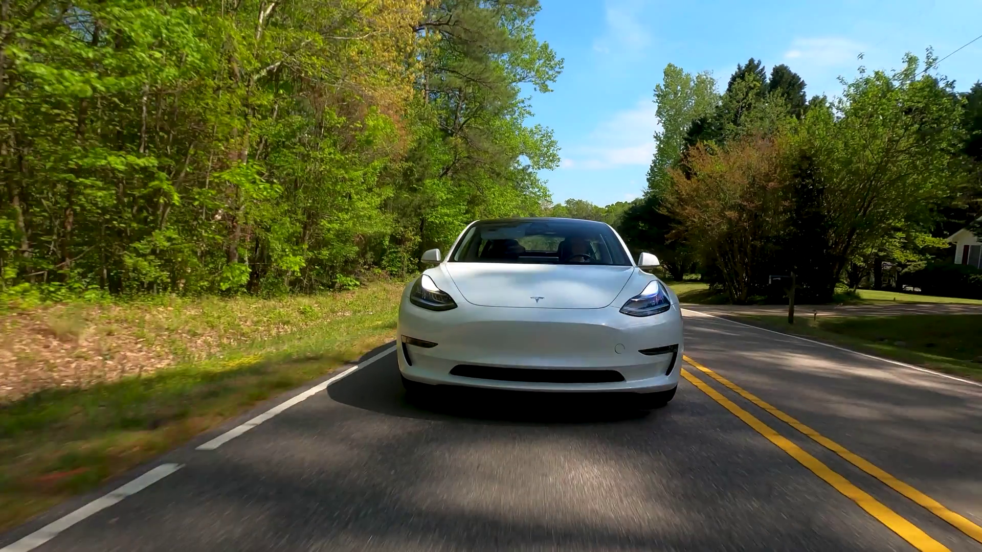 A New Tesla Model 3 Driving Down The RoadÂ