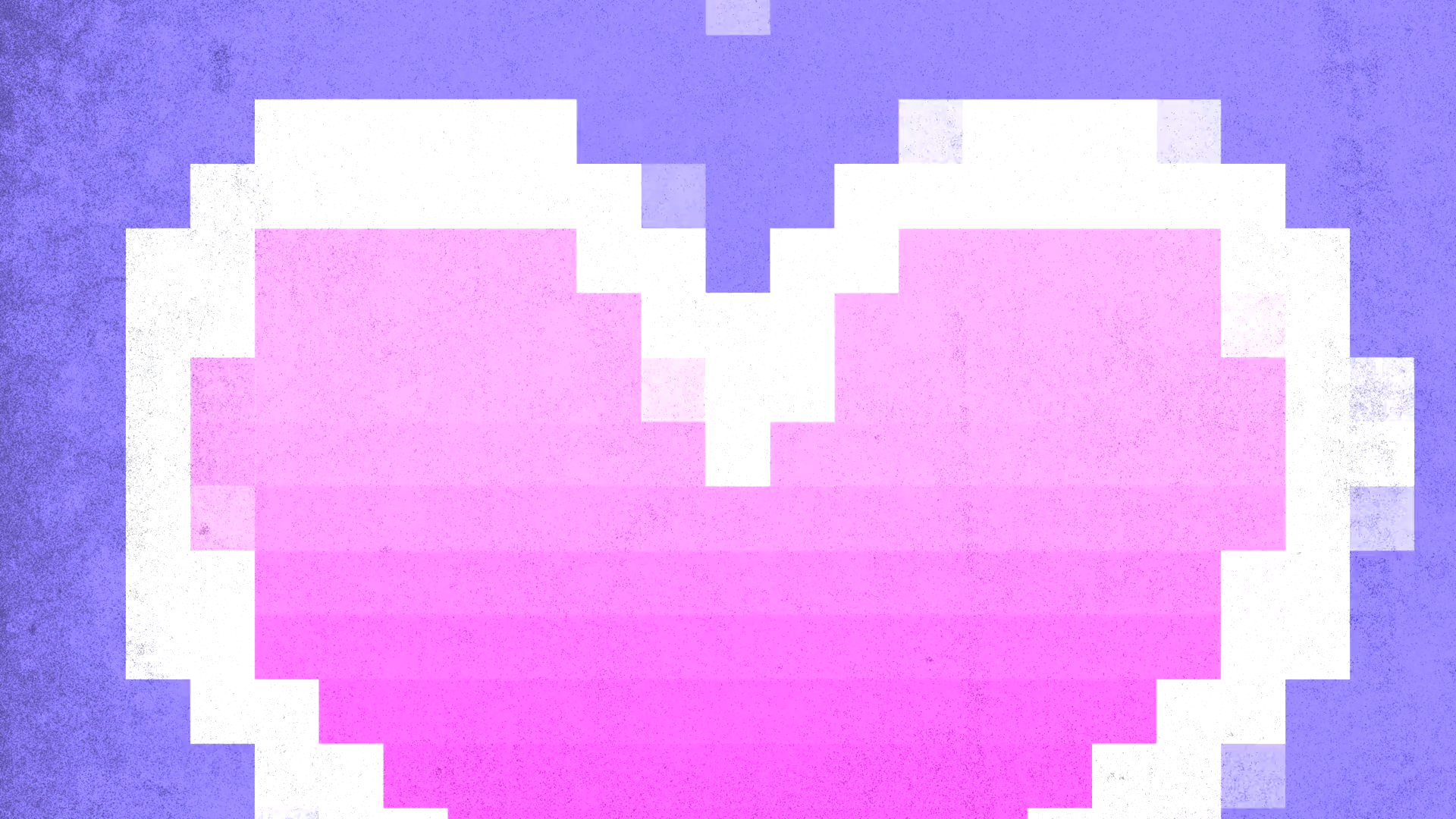 A Pixel Art Heart In Various Shades Of Pink And Purple With A White Outline Placed On A Blue Background Simple Yet Vivid Representation Of Love And Affection