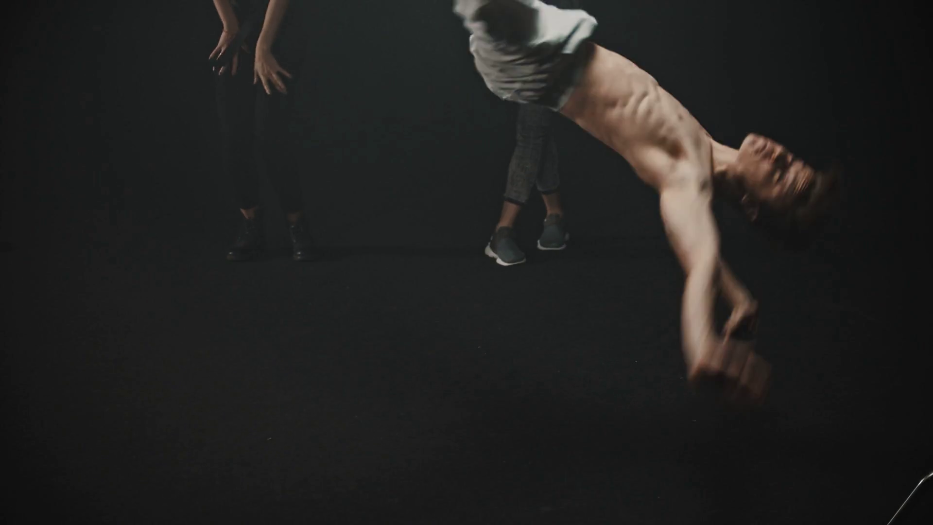 A Person Showcasing Breakdancing Skills Two Individuals Dancing In The Background Studio TrainingÂ