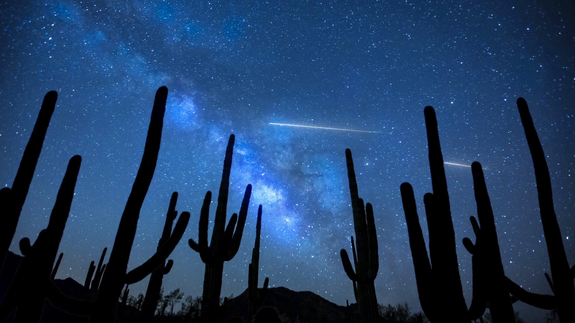 A Simulated View Of A Meteor Shower As Seen In The Desert Â