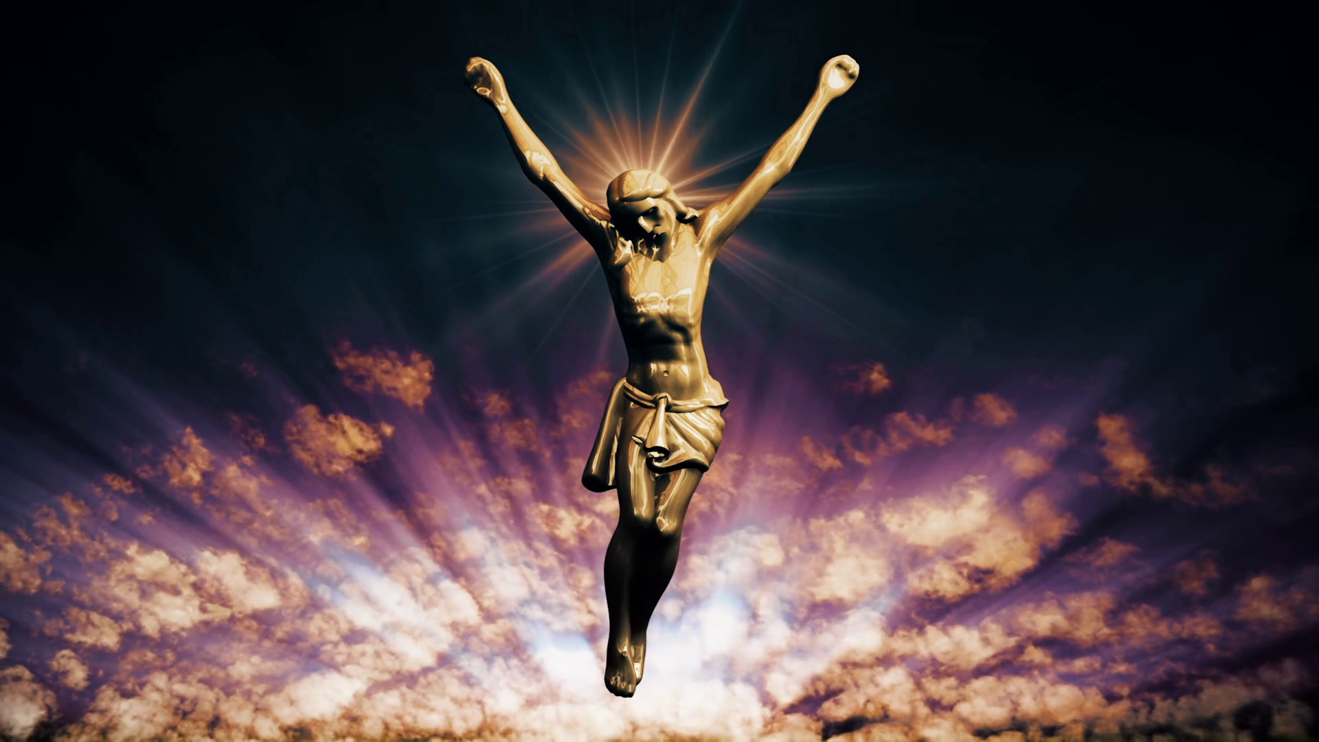 A Statue Of Christ On Sunsetting Clouds Loop