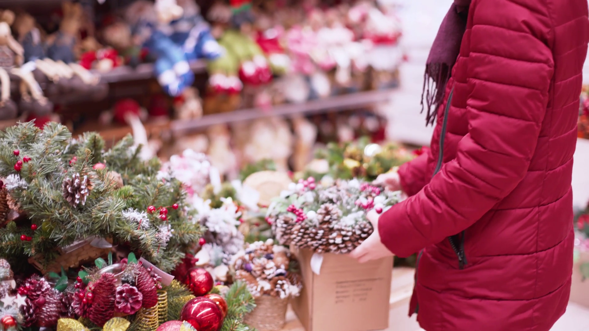 A Person Selects Holiday Decorations For Christmas And New YearÂ
