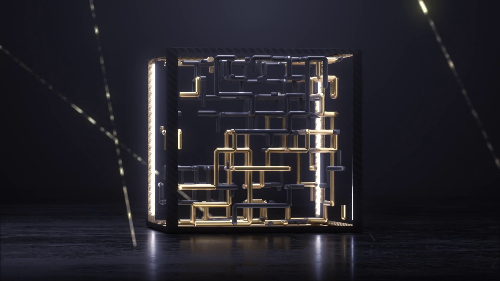 Abstract Cube With Gold And Black Maze Animation Inside