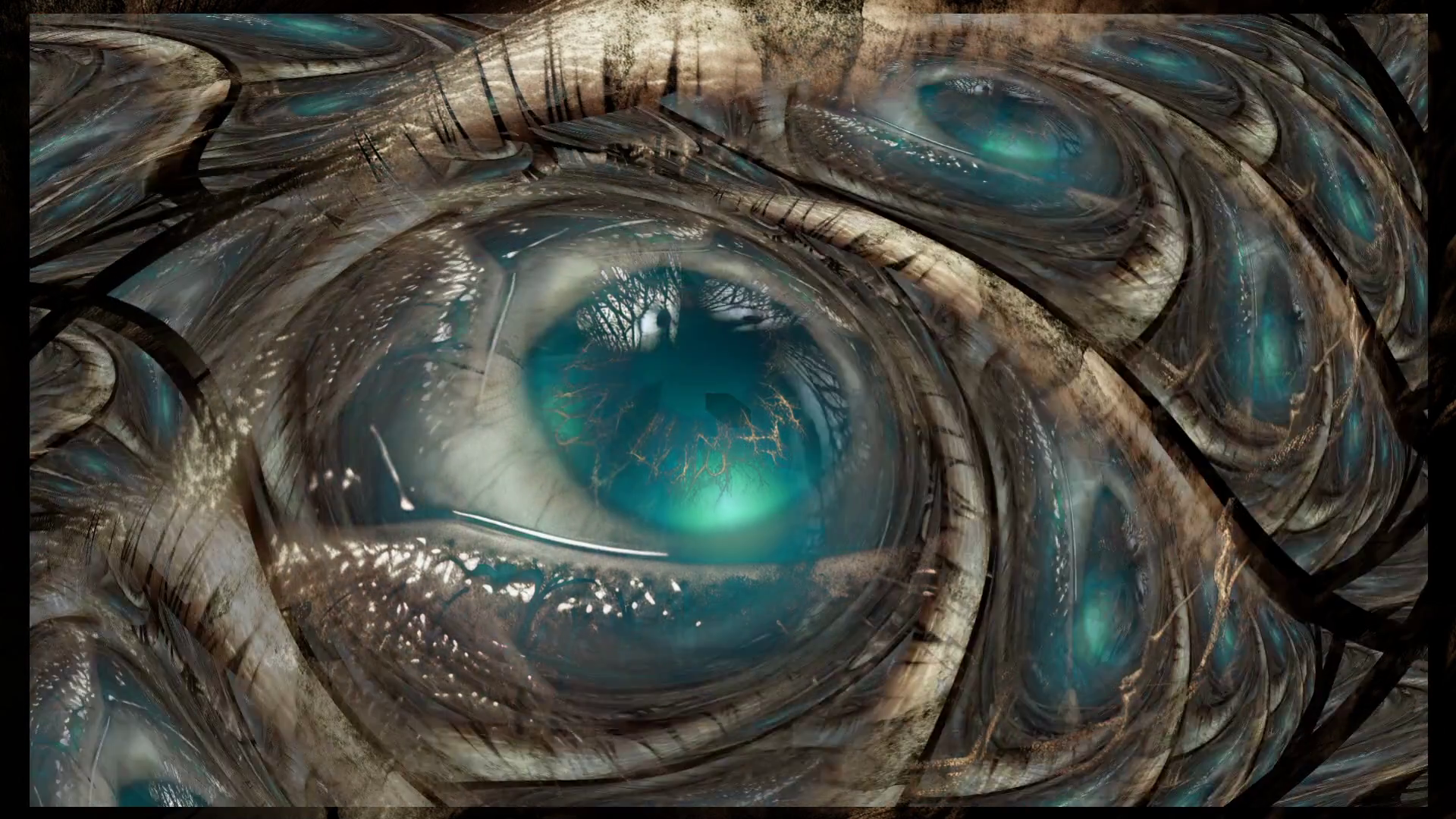 Abstract Turquoise Eye Animation With Dark Textured Surroundings