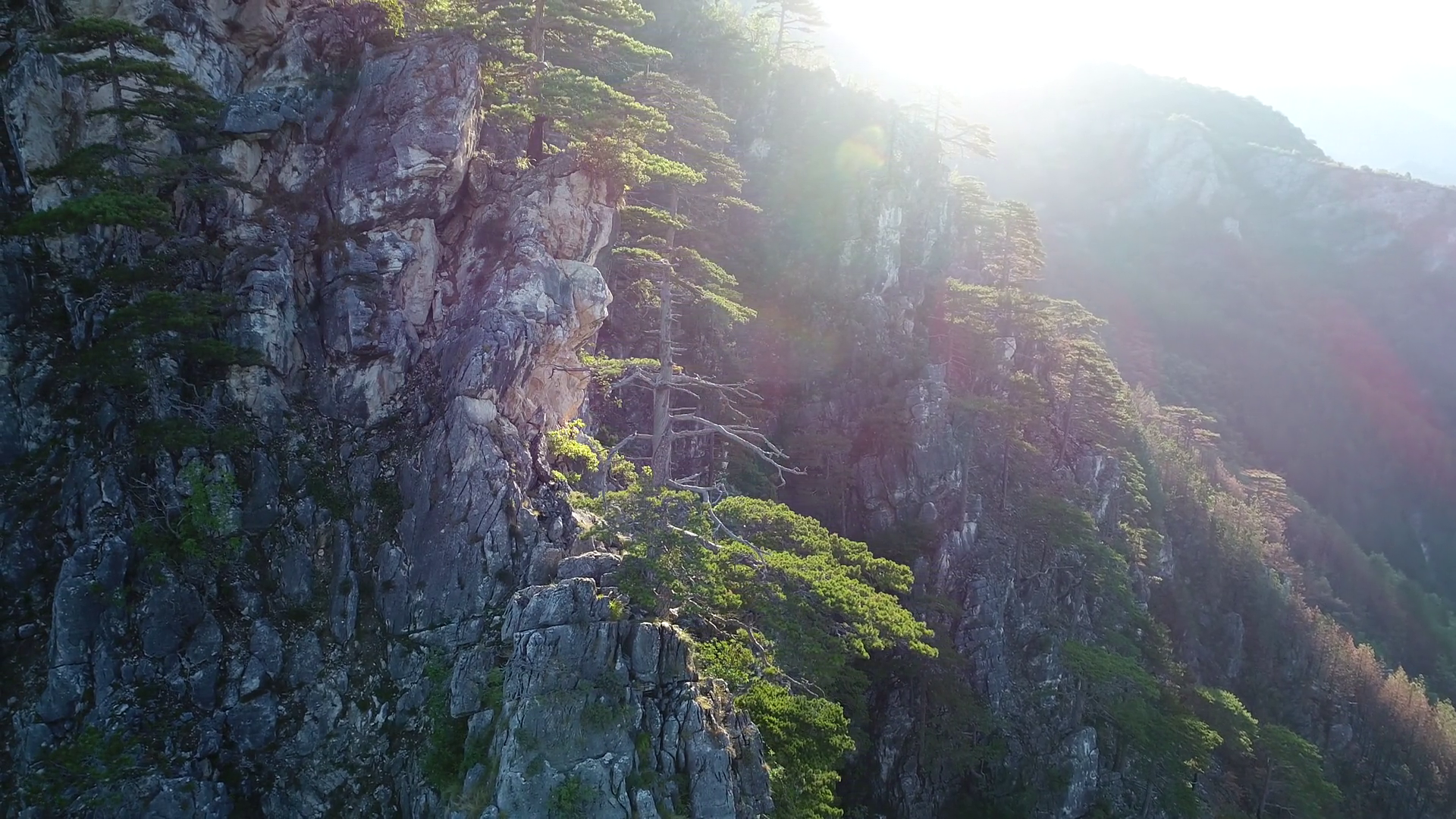 Aerial Drone Flying Over Pine Tree Forest In SunriseÂ