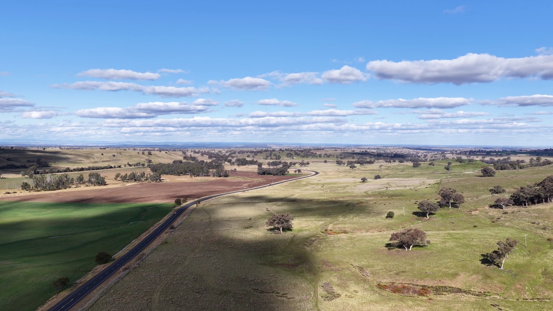 Aerial Drone Flyover Of Rural Road And Farmland In AustraliaÂ