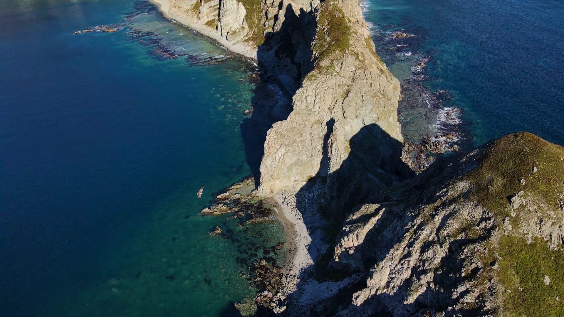 Aerial View A Bird Of Prey Flies At The Cape Of Four Rocks In The Sea Of Japan Animals In Their Natural HabitatÂ