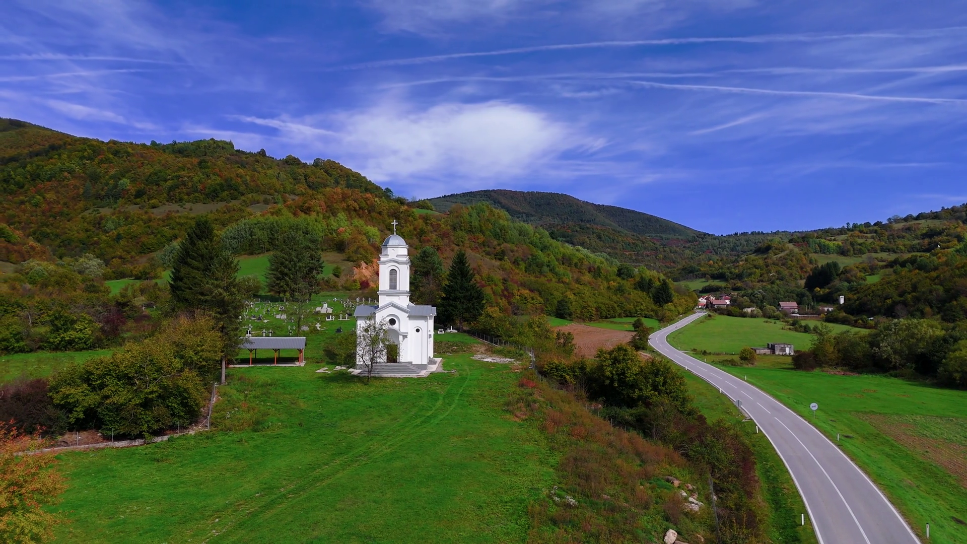 Aerial View Beautiful Church By The Countryside RoadÂ