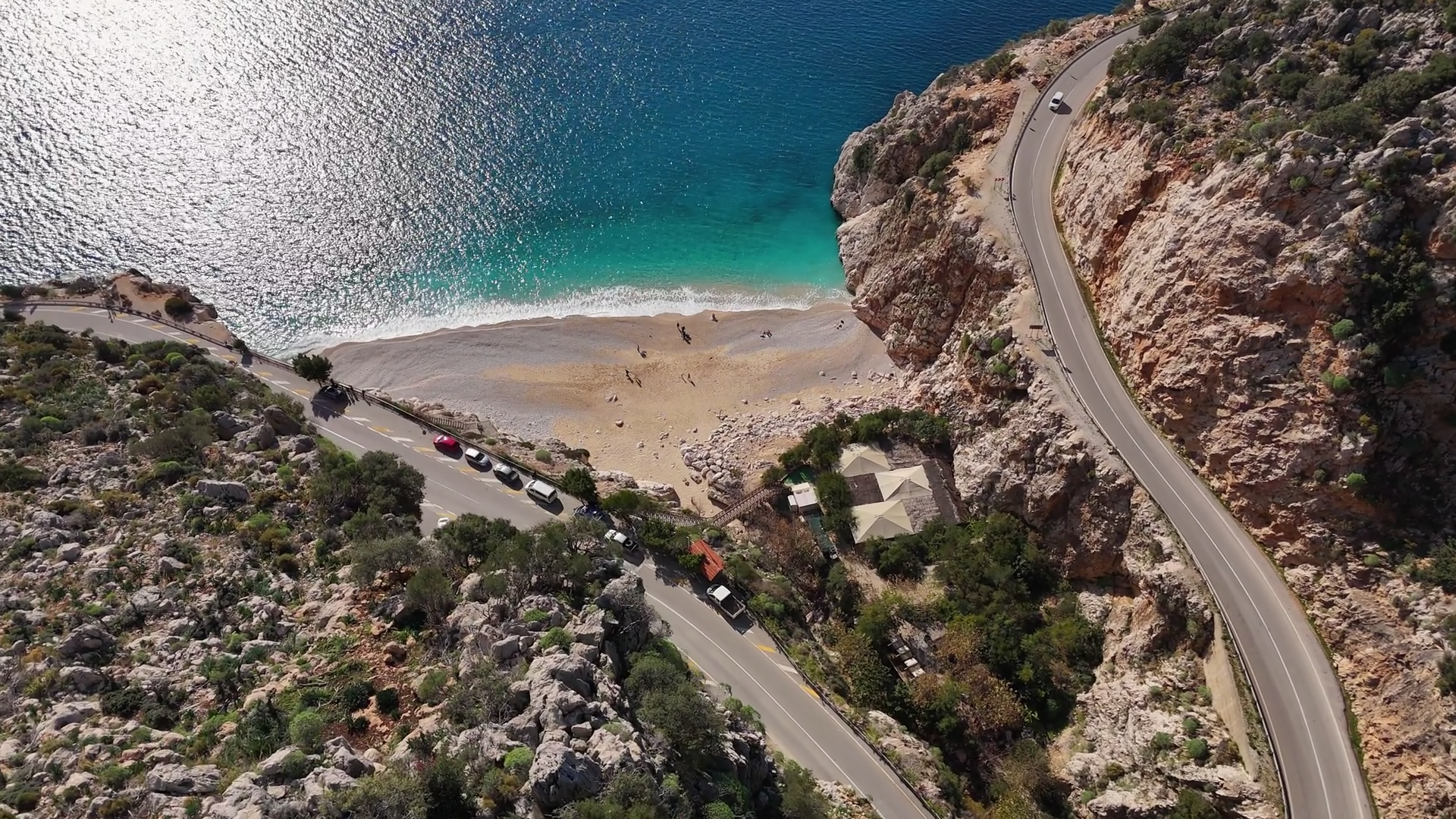 Aerial View Of A Winding Road Following The Edge Of Steep Coastal Cliffs The Deep Blue Sea And Rugged Rocky Landscape Create A StunningÂ