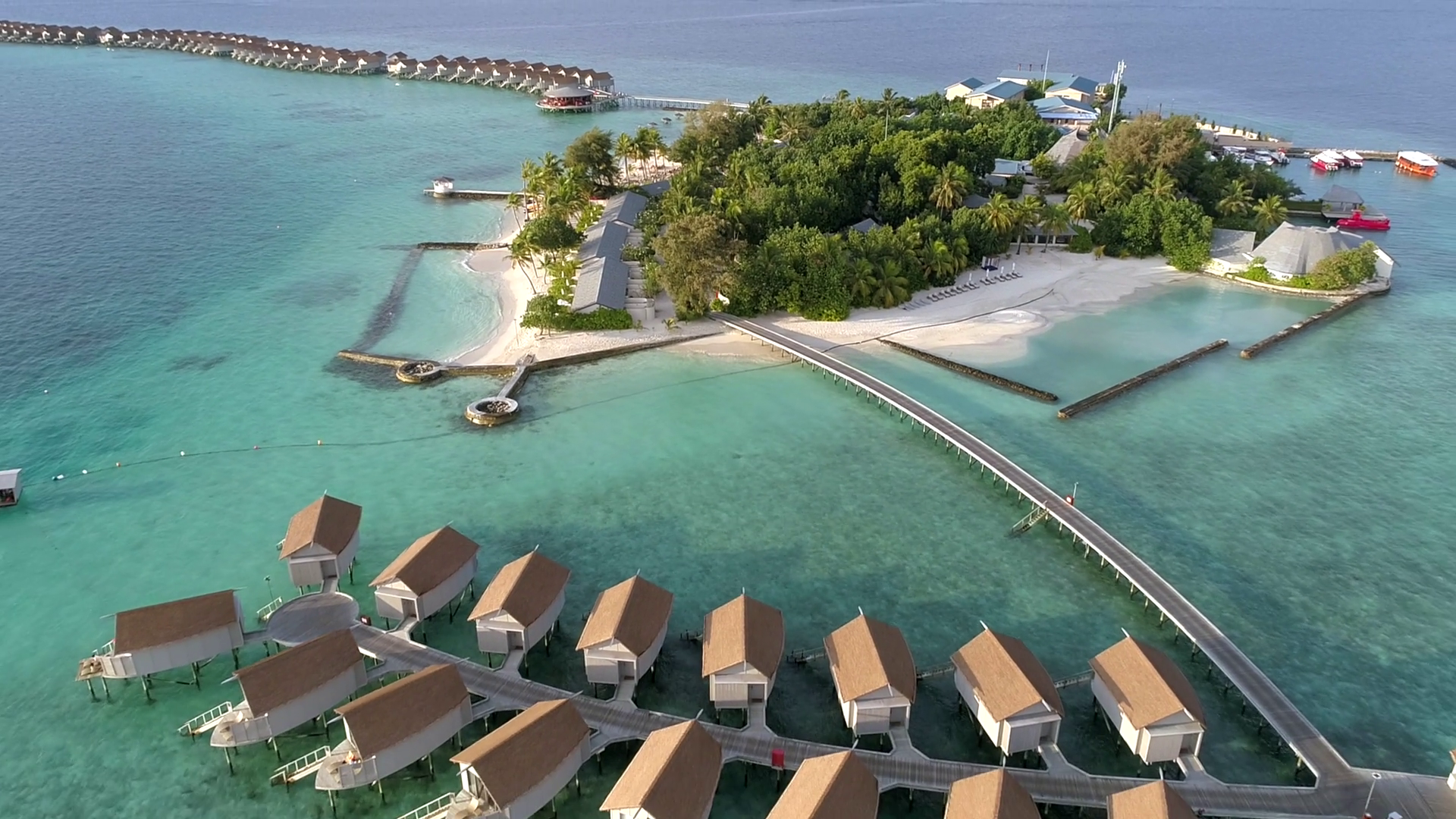 Aerial View Of Amazing Bungalow Resort Maldives IslandÂ